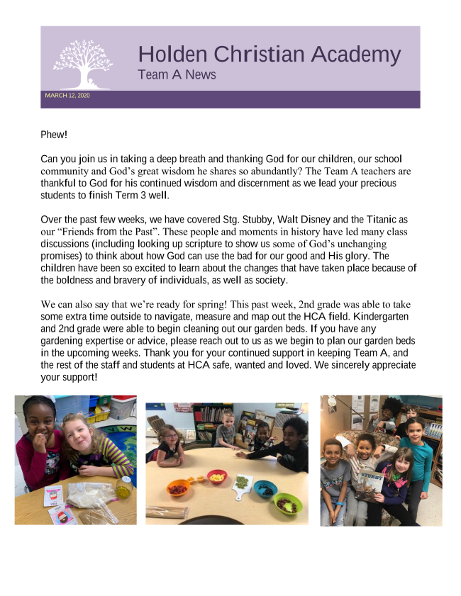 . So, dear HCA family, receive His comfort and peace as we walk through this scary time together.