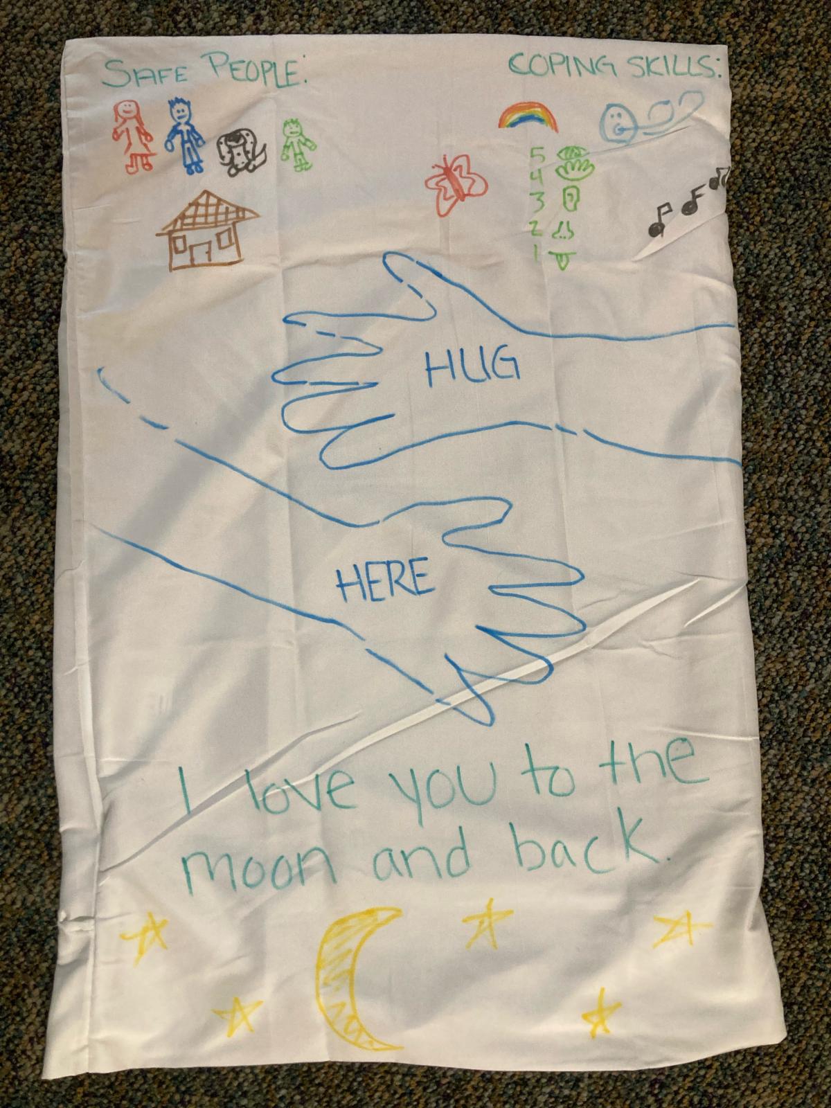 Children are invited to decorate pillowcases. They often draw pictures, write messages to their loved one, or illustrate cherished memories. For some, the pillow becomes a symbol of connection; for others, it becomes a safe place to rest their head at night - a reminder that they are not alone.