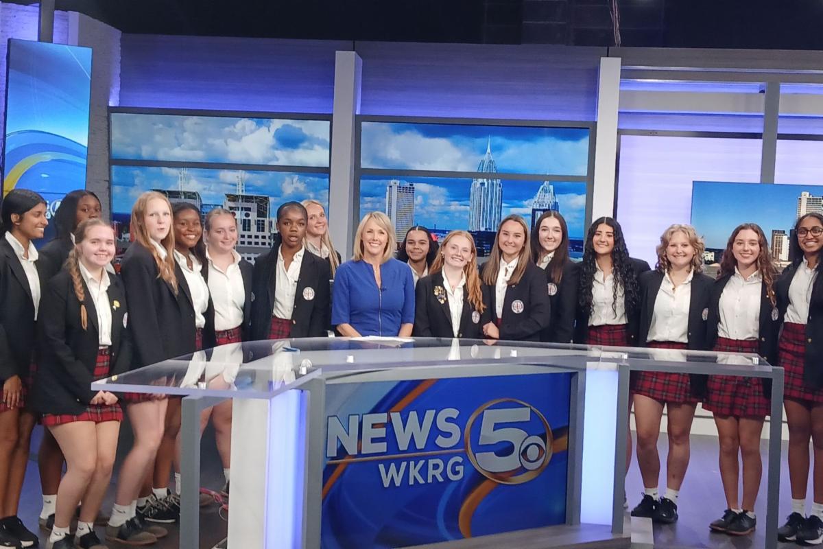 St. Luke’s journalism class took a field trip to the WKRG studio, where they got an inside look at the world of broadcast news. Students worked in the editing bay, explored the weather center’s high-tech equipment, and spoke with editors and reporters about their roles. The highlight of the visit came when they watched the noon broadcast live—and were even featured on air!