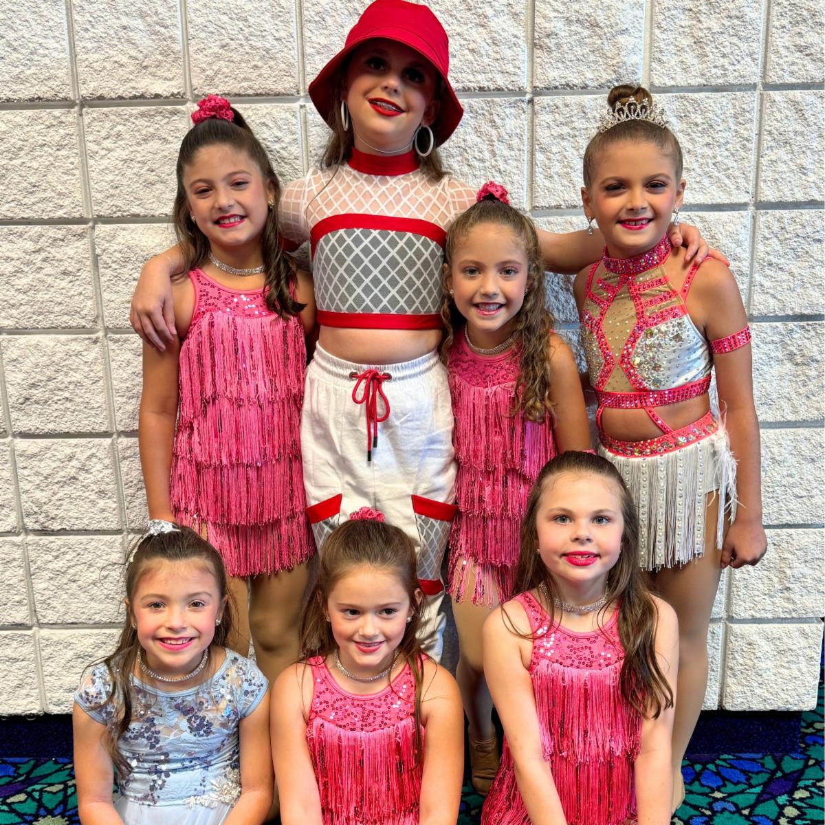 Emmi Miniard, Emmy Palmer, Madeline Palmer, and Anabelle Cumpton perform with the Mini Performance Team; Millie Griffin is part of the Performance Team; and Lauren McGinnis and Mia Palmer dance with the Junior Competition Team.