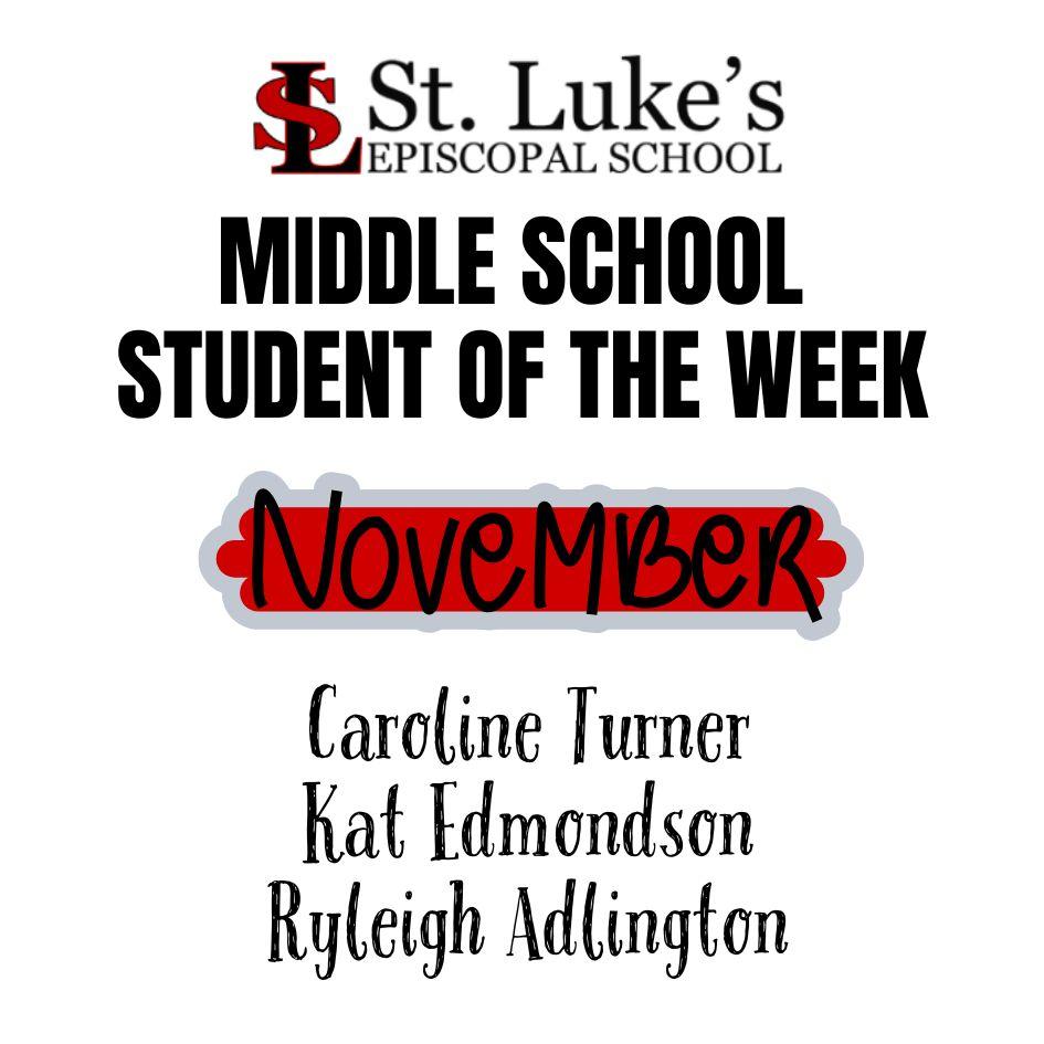 MIDDLE SCHOOL STUDENT OF THE WEEK - NOVEMBER