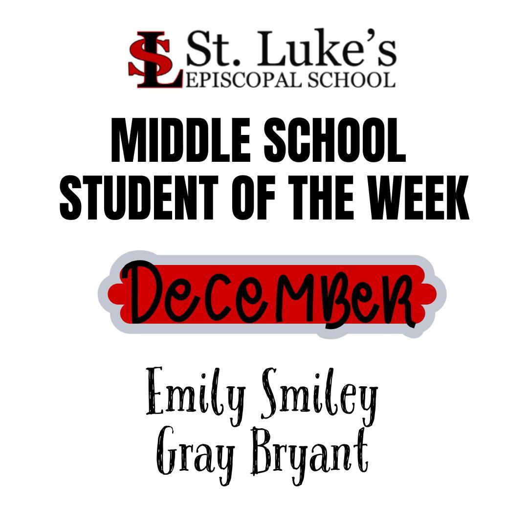 MIDDLE SCHOOL STUDENT OF THE WEEK - DECEMBER