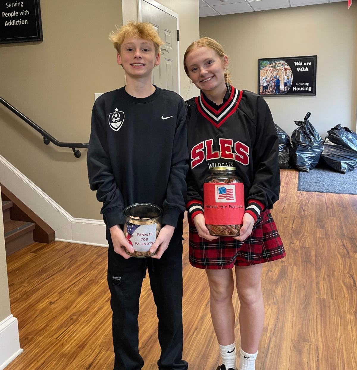 St. Luke’s SGA members organized a student-led effort to support our veterans through Pennies for Patriots. Pictured, Brantley and Maddie Banks deliver the donations to Volunteers of America.