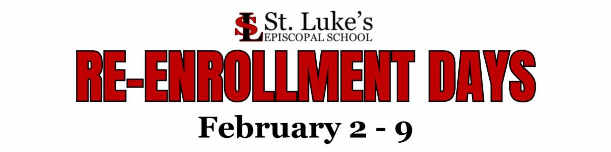St. Luke's Re-Enrollment Days for the 2026-2027 school year will run from Monday, February 2, to Monday, February 9. Enrollment contracts will be emailed from DocuSign. A late fee of $500 per student will be assessed for any contract submitted after February 28.