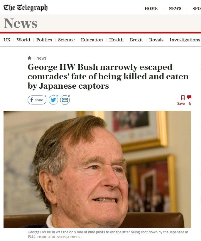 "George H.W. Bush narrowly escaped comrade's fate of being killed and eaten by Japanese captors":