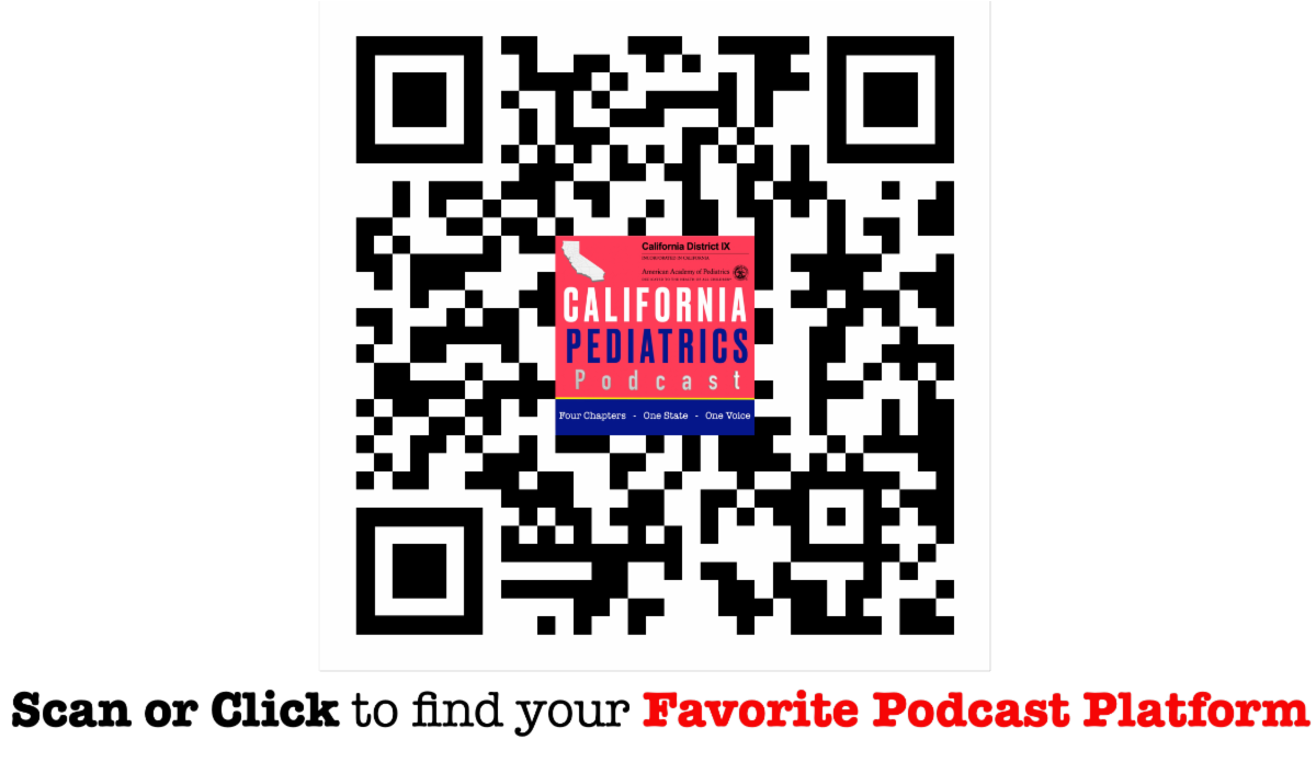 California Pediatrics is a podcast by pediatricians from the four California chapters of the American Academy of Pediatrics presenting current affairs, highlights on career paths, and tips for parents. Please Follow!