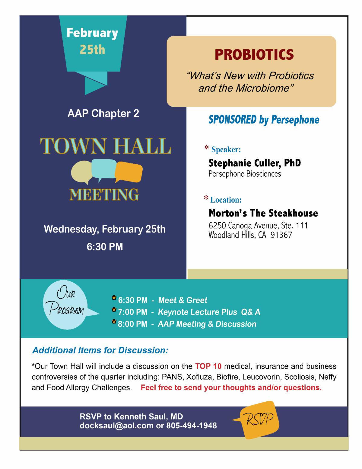 Don't miss this month's AAP-CA2 Town Hall with Ken Saul, MD. Details are below, make sure you RSVP! Speaker: Stephanie Culler, PhD Topic: What’s New with Probiotics and the Microbiome