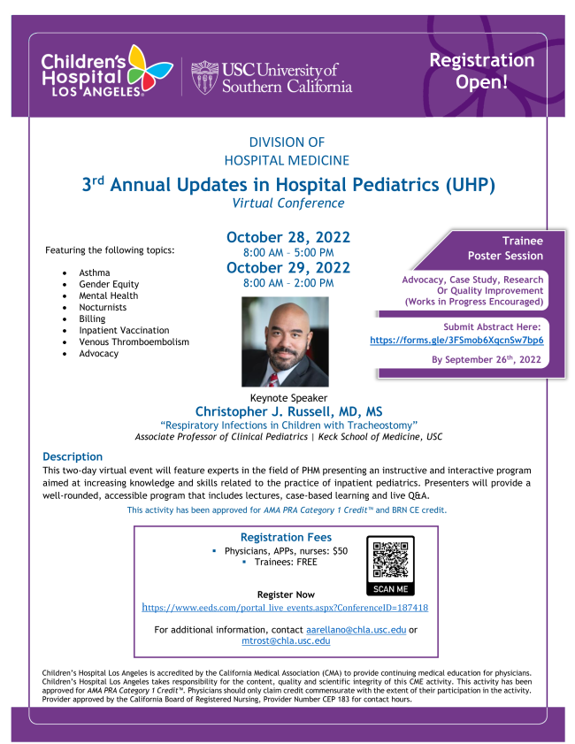 Oct 28-29 CHLA 3rd Annual Updates in Hospital Pediatrics