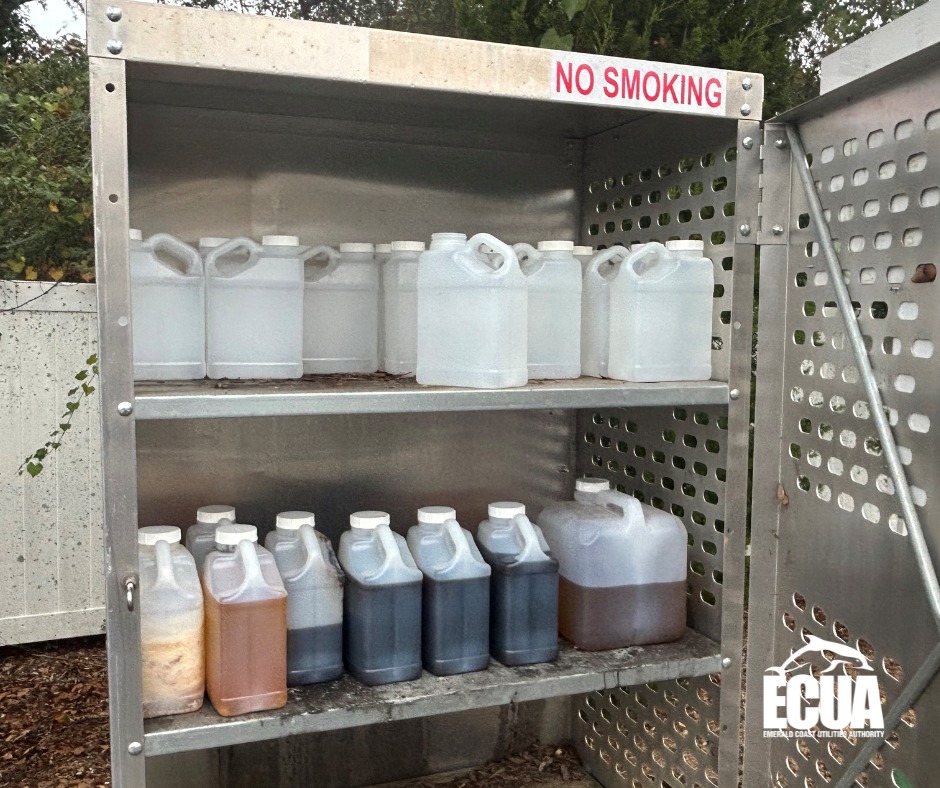 Pour FOGs into an empty container and store it for reuse in future cooking, throw it away, or recycle it at an ECUA FOG Disposal Station. ECUA provides free FOG collection containers at Disposal Stations throughout the county. Pick one up, return it when full, and the collected FOGs will be recycled into biodiesel fuel.