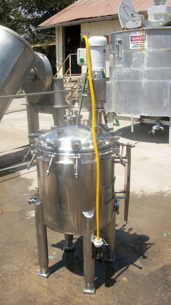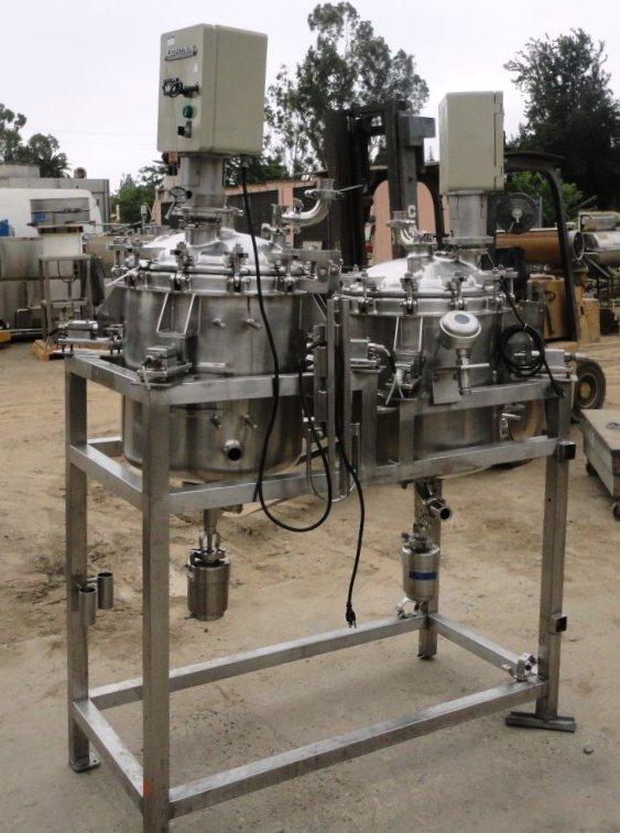 (2) DCI pressure tank, 30 gallon, 316L stainless steel, dished top and bottom, with Lightning mixer with variable speed control. Unit is internally rated for 50 to a negative 15 PSI at 300 degrees Fahrenheit.