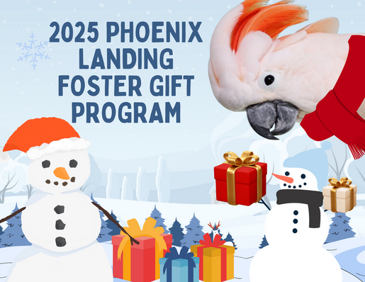 | | Annual Holiday Gift Program for Foster Birds Would you like to donate a special gift to a current Phoenix Landing foster bird? Just go to our holiday gifts webpage and click on the yellow purchase button to see each bird's special request. Or feel free to make your own personal choice, like an all-purpose perch or Pizza toy. All gifts are tax deductible to the extent provided by law. | | How are your birds celebrating the holidays? We think they deserve some festive gifts too! We have created some special boxes in three different sizes (S,M,L) to make it easier for you to give your birds a gift box of toys. We are offering two different styles to help fit your parrot's preferences, a shredder box and a blockbuster box. Click here for more info. | | | | |