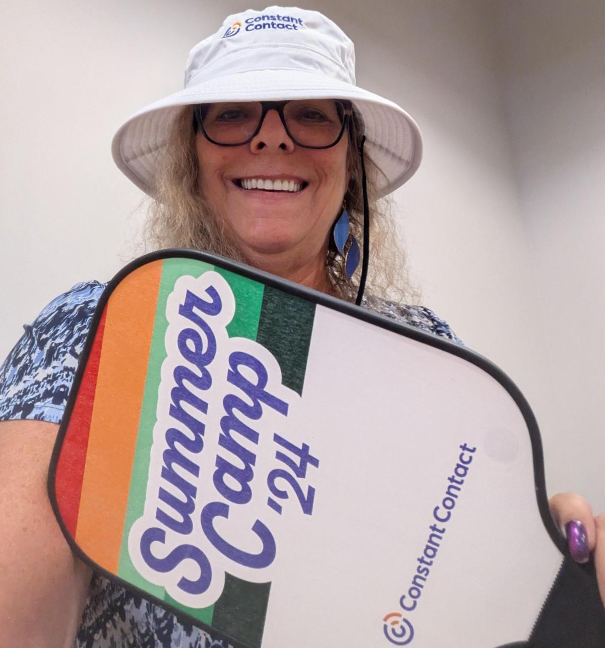 Apparently I am ready for pickle ball thanks to Constant Contact - the swag arrived for taking part in their annual summer camp. They should do this earlier in the summer - each year they send floaties, hammocks, all great things to use in the summer - but arrives when the summer is over. This year pickleball racquets and balls and a what I call a 'Gilligan Hat' complete with Constant Contact branding.