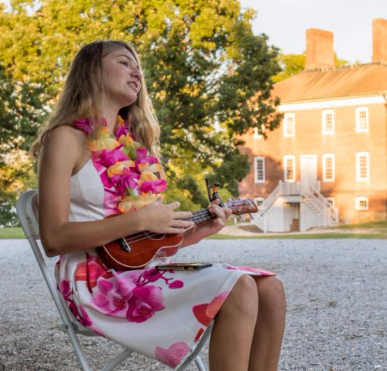 | Ukulele player, Darcy St. John greeted guest with island sounds |