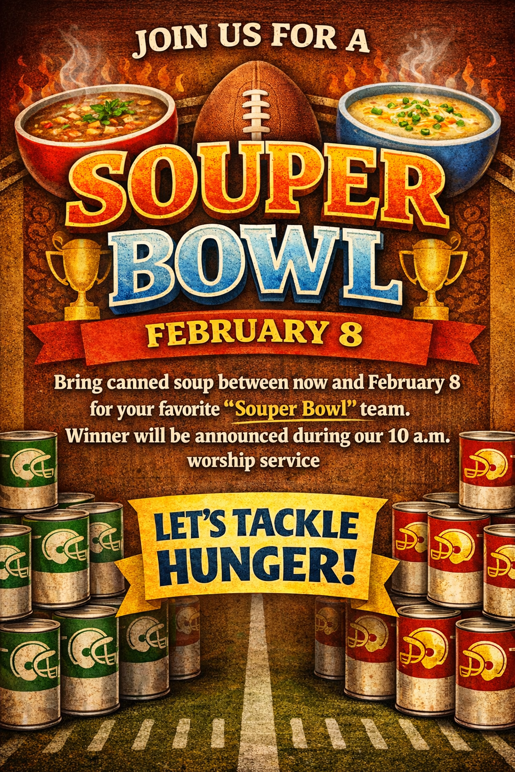 We will be gathering cans of soup and other substantial foods for our PLC Food Pantry in the weeks leading up to February 8. Get your competitive spirit on!