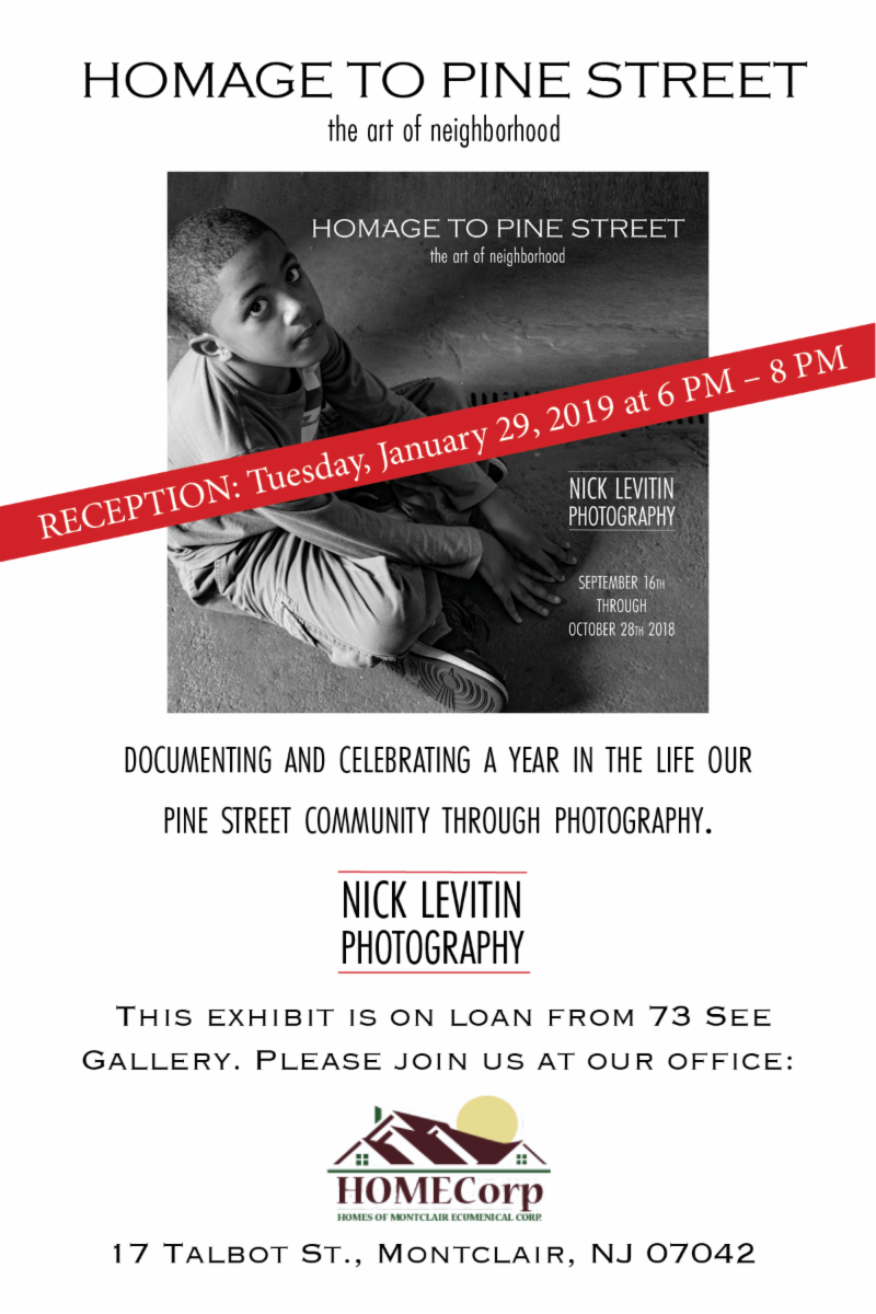 Photographer Nick Levitin will talk about the exhibit and can answer questions about this celebration of Pine Street. Some pieces available for purchase. Light refreshments will be served, with music provided by local jazz musician (and Jazz House Kids fan) Jim Zucker. No need to register, stop by for a few or the whole time!