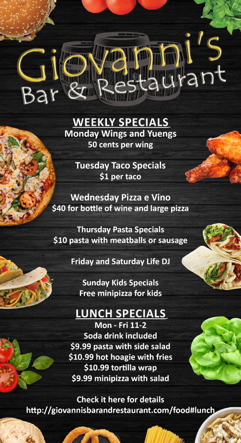 , serving lunch and dinner specials. Also, we offer kids' specials, gluten-free, vegetarian, vegan, and dairy-free menus.