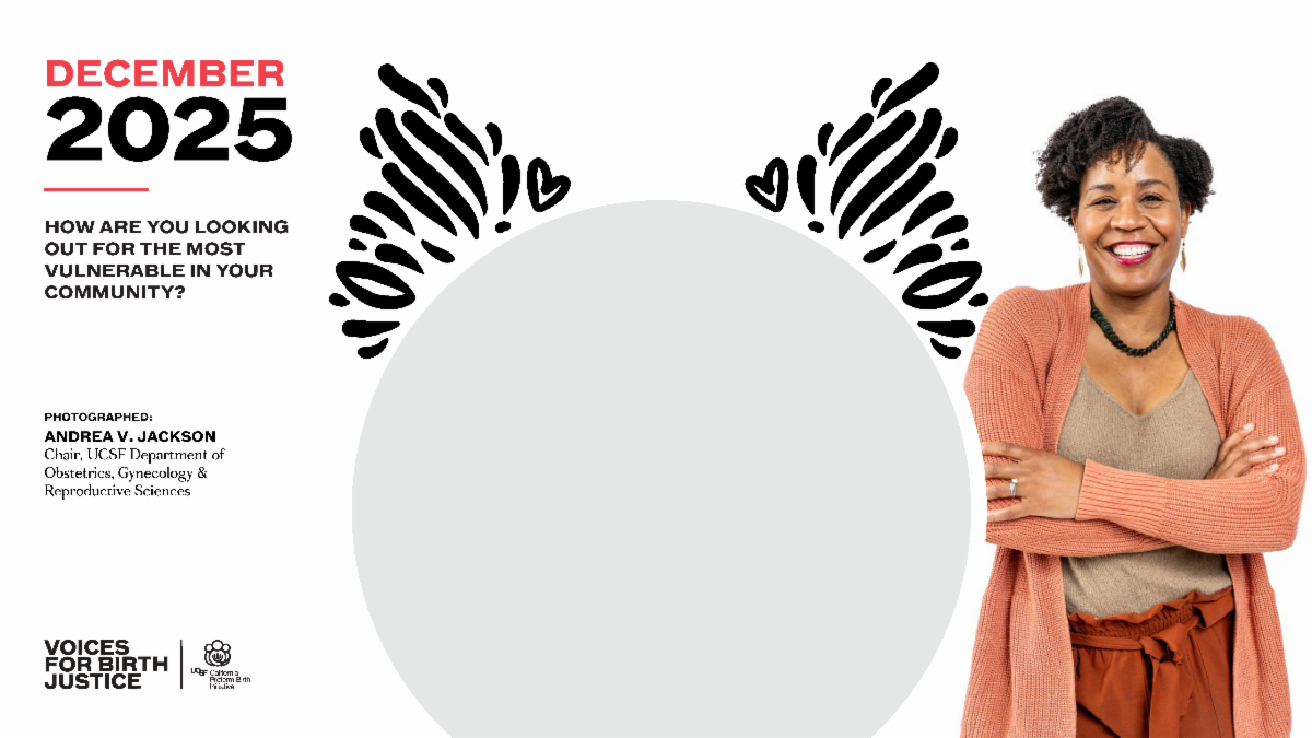 The December background features Dr. Andrea V. Jackson, Chair, UCSF Department of Obstetrics, Gynecology & Reproductive Sciences.