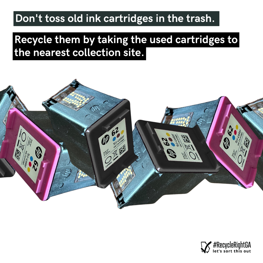 Replacing an ink cartridge? Cartridges are recyclable! Don't toss the cartridge in the trash or in your recycling bin or cart. Take the used cartridge to your office supply retailer (e.g., Office Depot, Staples, or Target) or a local Best Buy store for recycling. Many manufacturers offer mail-in recycling options, too.