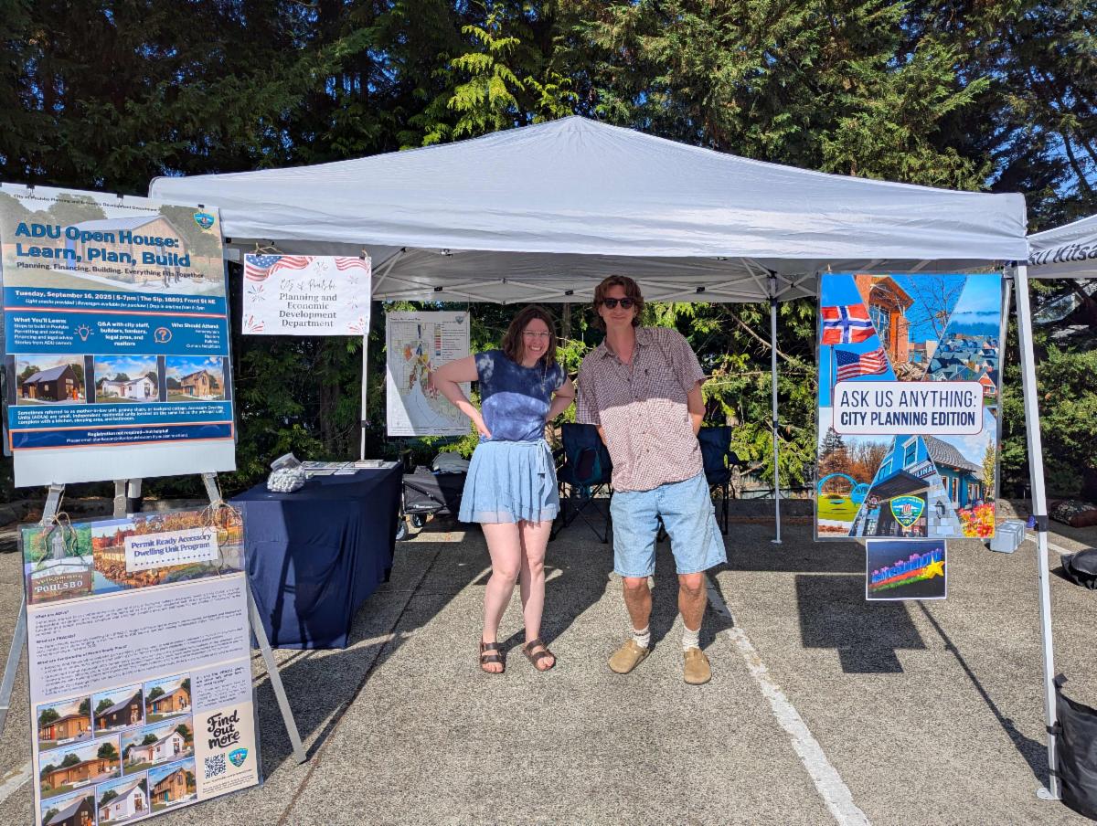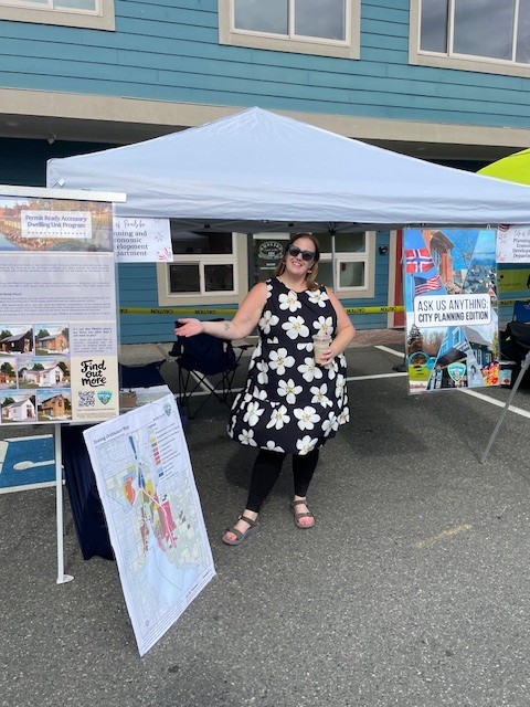 | | PED Department Around Town | In August, the Planning Department was out in the community at both National Night Out and the Poulsbo Farmers Market. Staff appreciated the opportunity to connect with residents and visitors, share information about planning initiatives, and hear directly from the community about their ideas and questions for Poulsbo’s future. | | | |