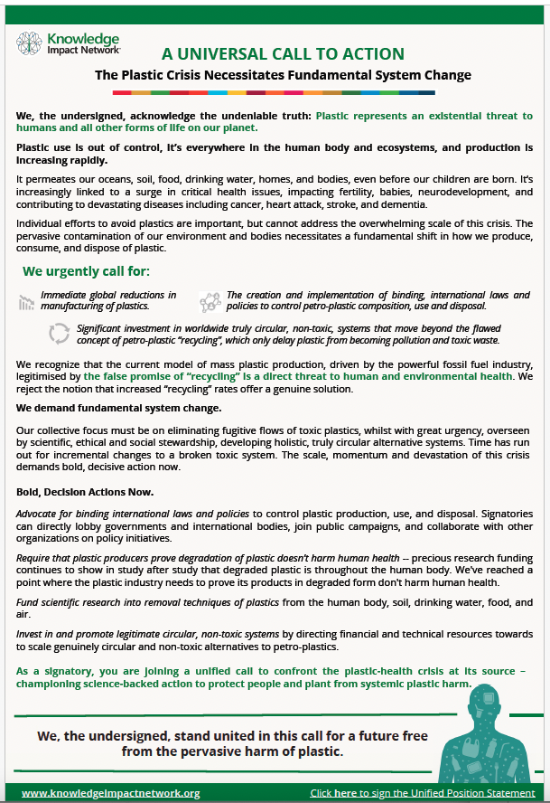 1. Synthetic plastics are accelerating climate breakdown, hastening the destruction of biodiversity and causing a human health and social injustice crisis.
