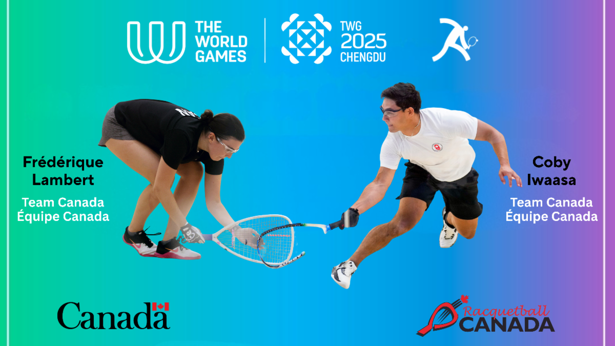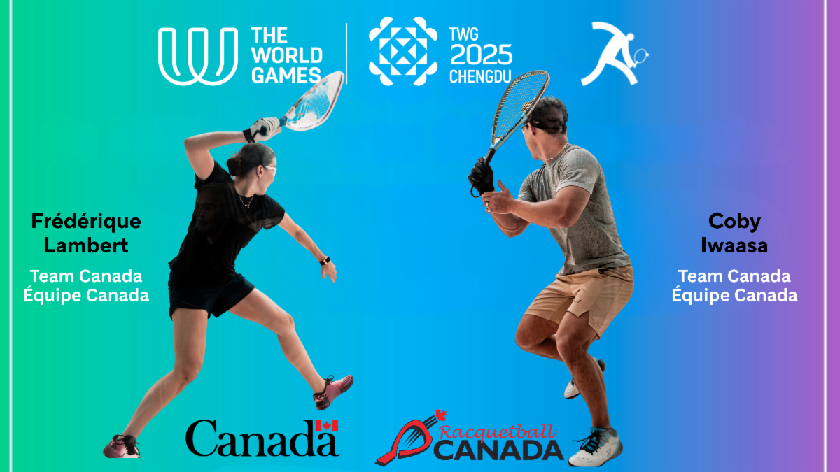 CHENGDU, CHINA – August 12, 2025 – Racquetball competition gets underway on Wednesday, August 13 (Tuesday, August 12 in Canada) in Chengdu, China at the 2025 World Games. Canadian athletes Frédérique Lambert of Montréal, Québec, and Coby Iwaasa of Lethbridge, Alberta, are ready to represent the nation.