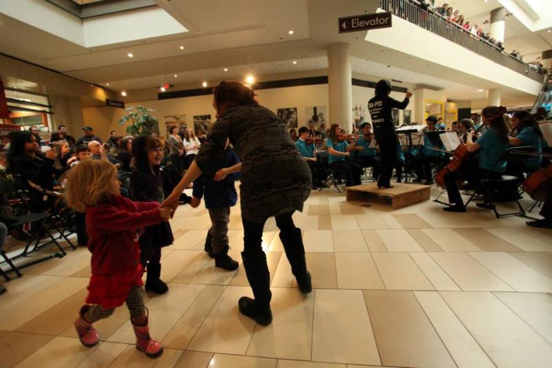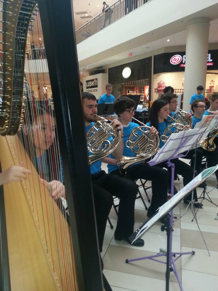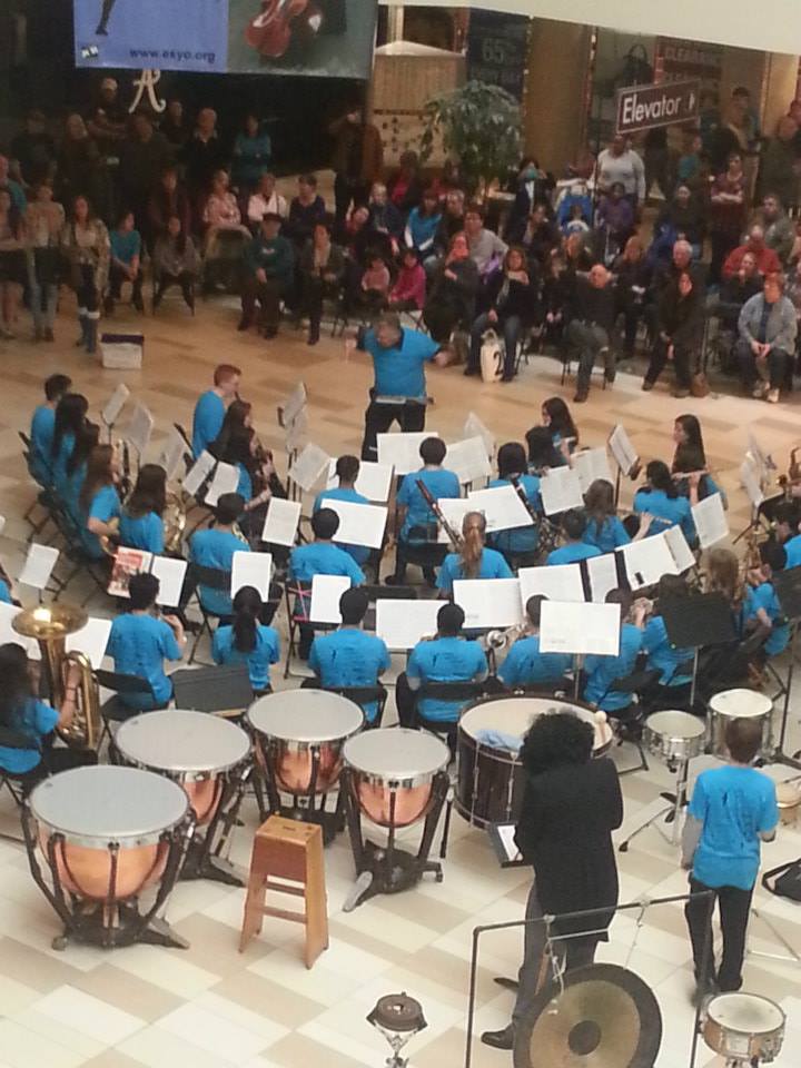 Small groups of ESYO musicians will play near Old Navy store throughout the day.