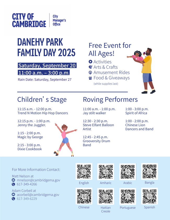 More details coming soon! Contact Sierra at sriley@cambridgema.gov or (617) 349-5522.