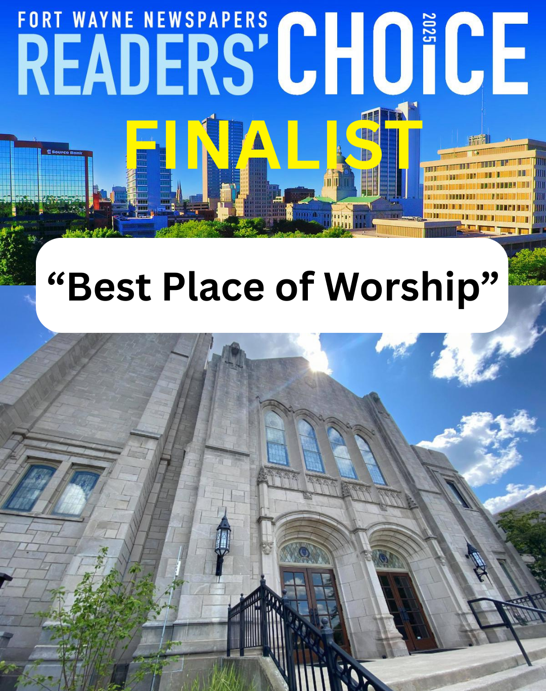 Plymouth has been nominated as a top five "Best Place of Worship" in Fort Wayne Newspapers' 2025 Readers Choice Awards.