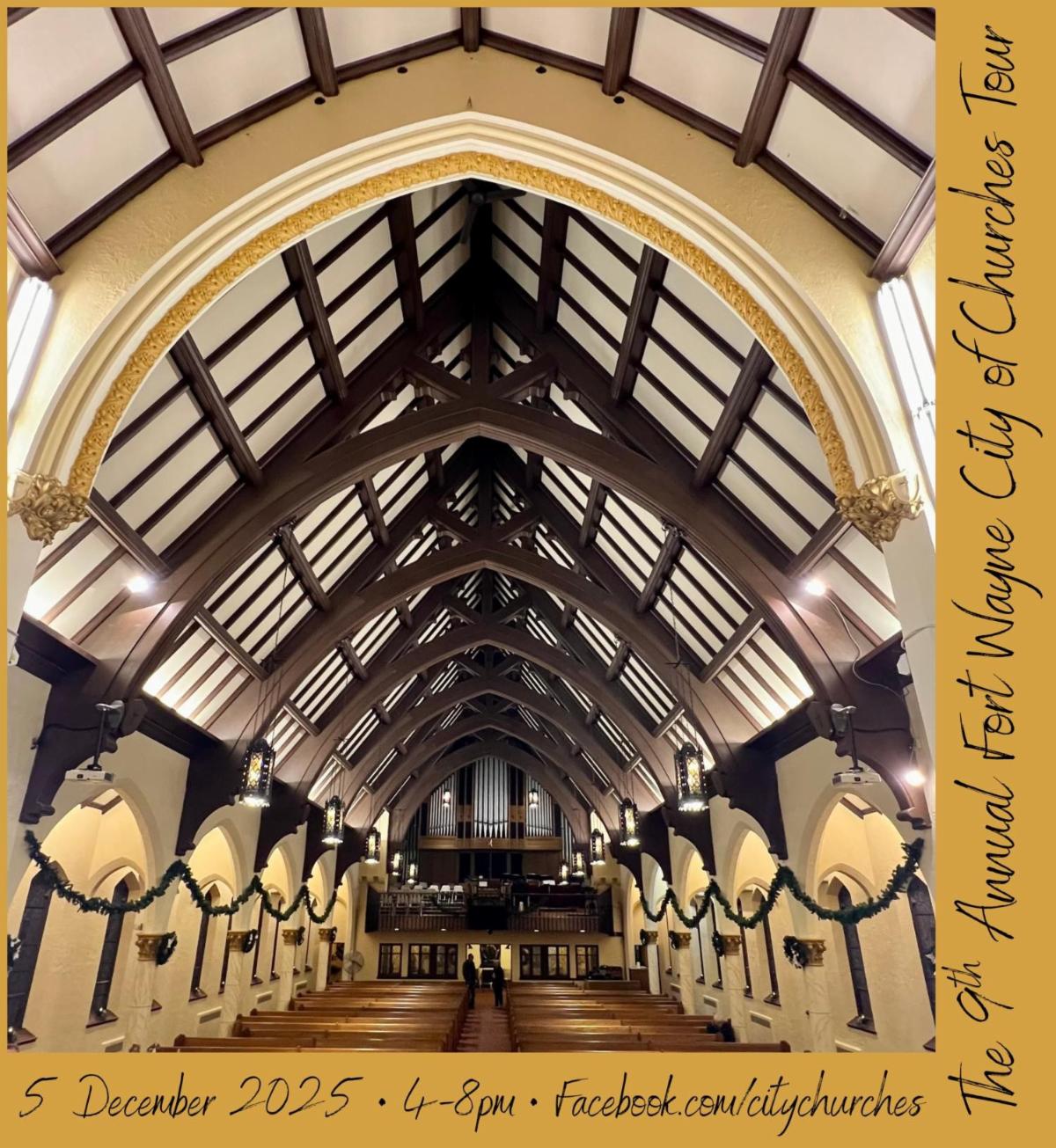 | | We are once again participating in Fort Wayne's City of Churches Tour. We are looking for 2-3 volunteers to help welcome guests as they come to view the sanctuary. Volunteer shifts are from 4-6 pm and 6-8 pm. If you would like to volunteer, please email Rev. Ofner-Seals at smo@plymouthfw.org. | | | | Tuesday, December 9 - Make the Yuletide Gay | | |