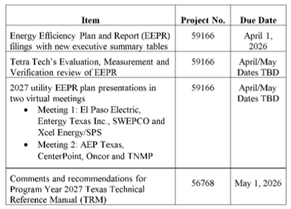 After the utilities provided presentations on the challenges and opportunities to improve their programs in the next year, PUCT staff provided a timeline for next steps.