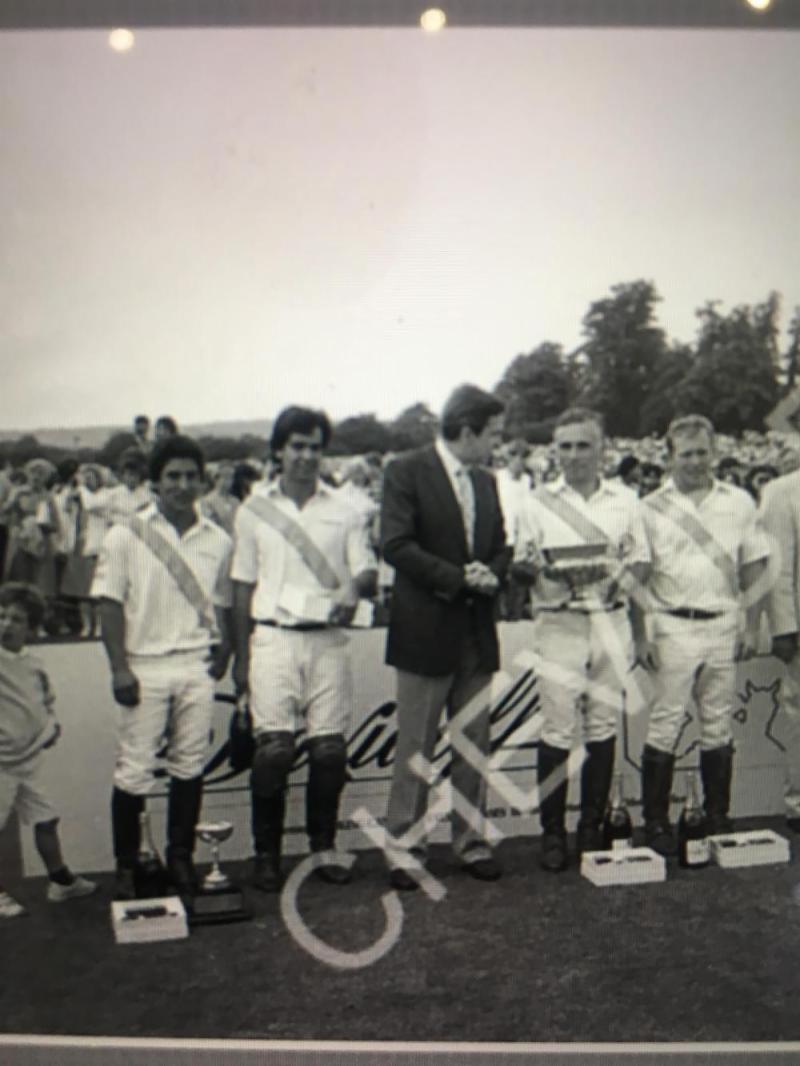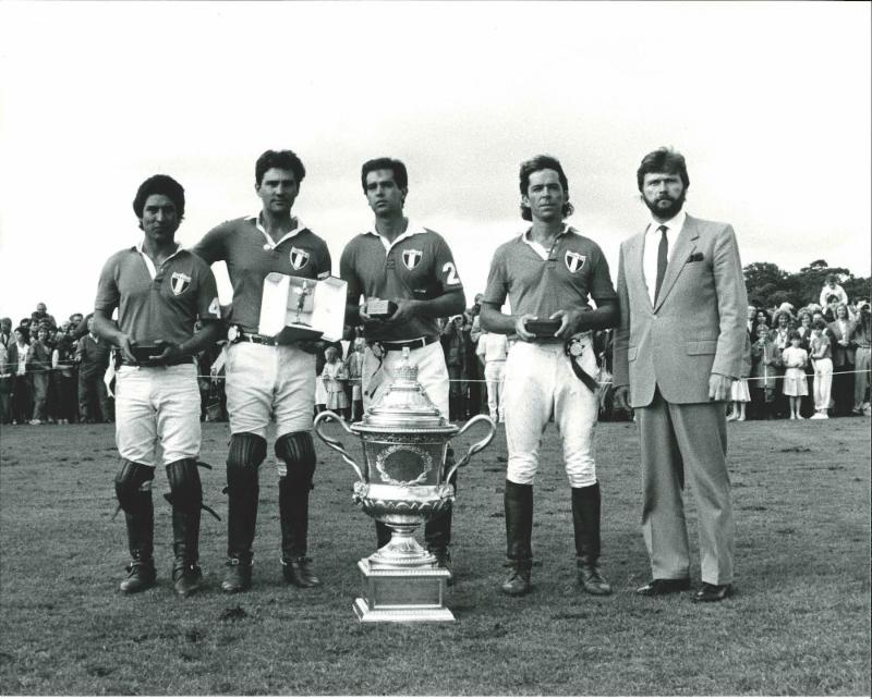 | 1986 British Gold Cup Winners, Tramontana, (from left to right) Chuy Baez, Carlos Gracida, Anthony Embiricos, Martin Brown. Photo courtesy of Memo Gracida |