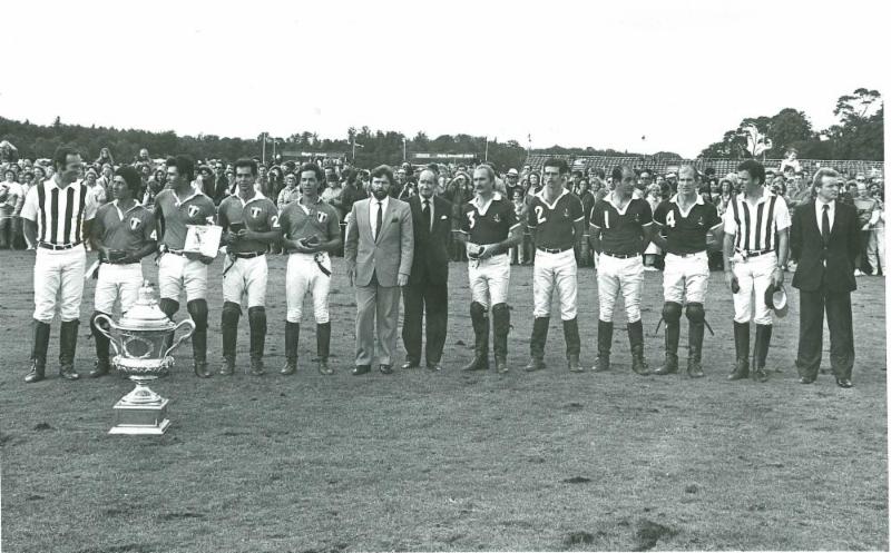 | 1985 Coronation Cup, (from left to right) Chuy Baez, Memo Gracida, Carlos Gracida, Ruben Gracida for Mexico. Julian Hipwood, Alan Kent, P. Churchwood, Howard Hipwood for England. Photo supplied by Polo Players Edition |