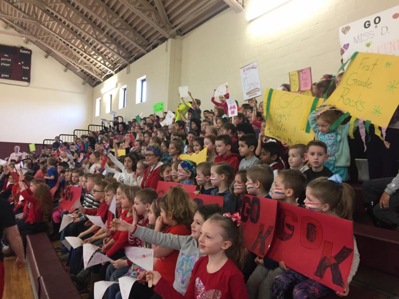 Students cheered on their teachers as they went head to head in a "Minute to Win It"Assembly. Pictured above is 2nd grade teacher Mrs. McKenna winning the "Paper Dragon" game. Many thanks to the Home & School for all their efforts in making this year's Catholic School's Week a memorable experience!