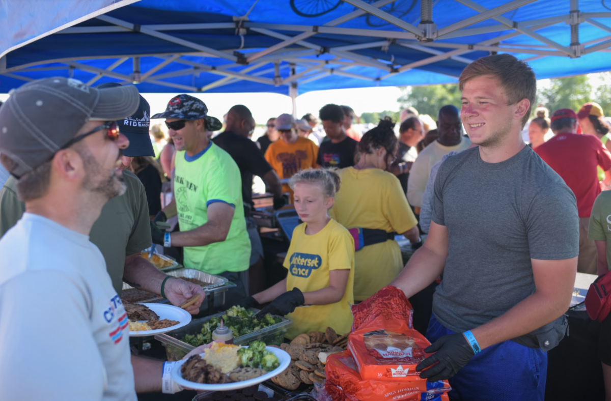 First-timers and RAGBRAI veterans alike pass the corn with us.