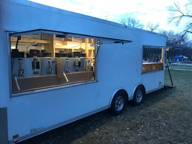 Our NEW Coffee Trailer The biggest perceived improvement of 2019 was our new coffee trailer pictured above and at right, which brought the coffee spigots down to countertop level in the morning. We served you faster, with one window for coffee service, and another for cream and sugar. We brew six gallons every eight minutes, almost as fast as you drink it. We have hot water and tea bags too.