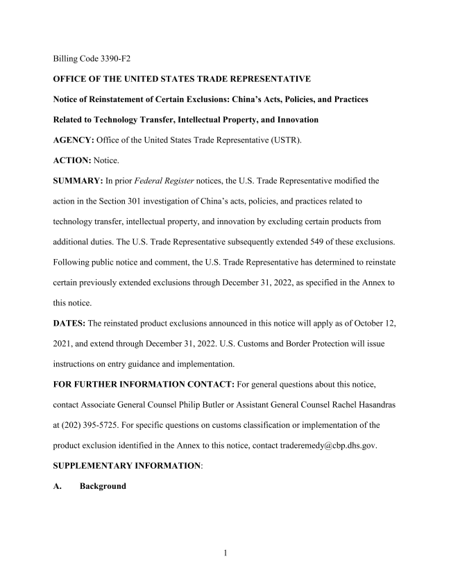 - ST&R is advocating for the renewal of all previously approved exclusions and the creation of a process allowing for new exclusion requests (for more information, please contact strdc@strtrade.com).