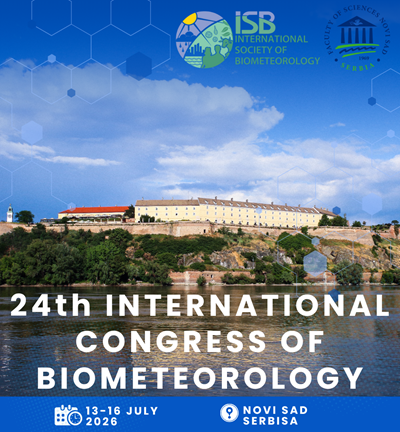 The 24th International Congress of Biometeorology will be held at the University of Novi Sad, Faculty of Sciences in Serbia in the summer of 2026. The Congress will be held from July 13th to 16th in 2026 using a hybrid format, which includes both onsite presentations/posters and online presentations. More information will be available in the following period, and the active preparation of the organization will begin in the spring of 2025.