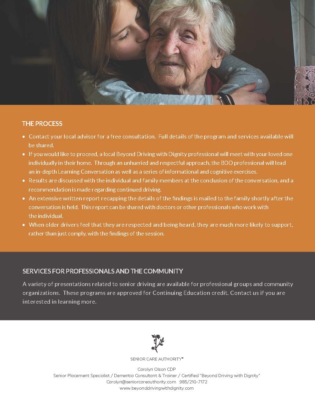 Join us to learn more about how to broach the difficult conversation when it’s time for a loved one to stop driving. Carolyn Olson, CDP, CSA will guide us through this safety necessity.