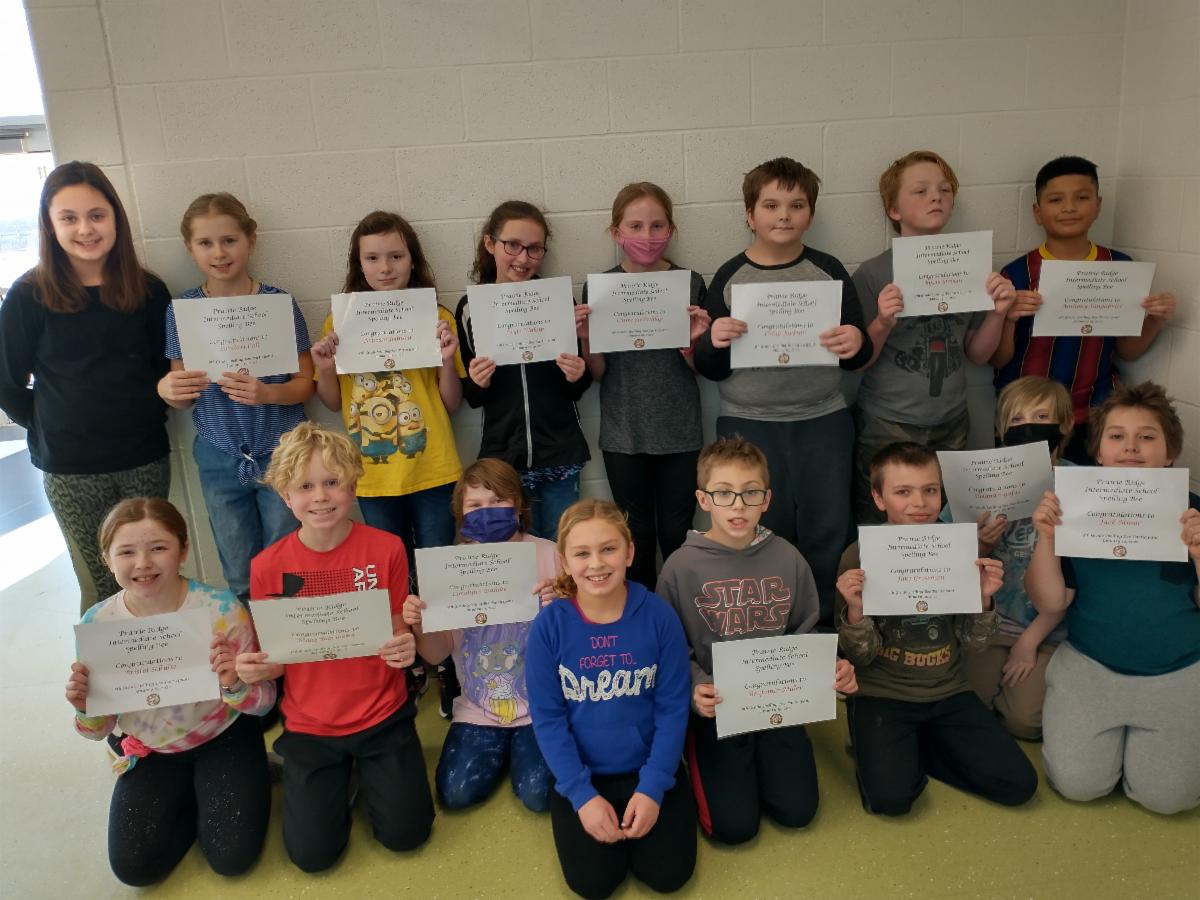 The Fourth and Fifth Grade students pictured below competed in a spell-off at Prairie Ridge Intermediate School on January 10 for the opportunity to participate in the CWTAG Spelling Bee on February 1 in Portage.