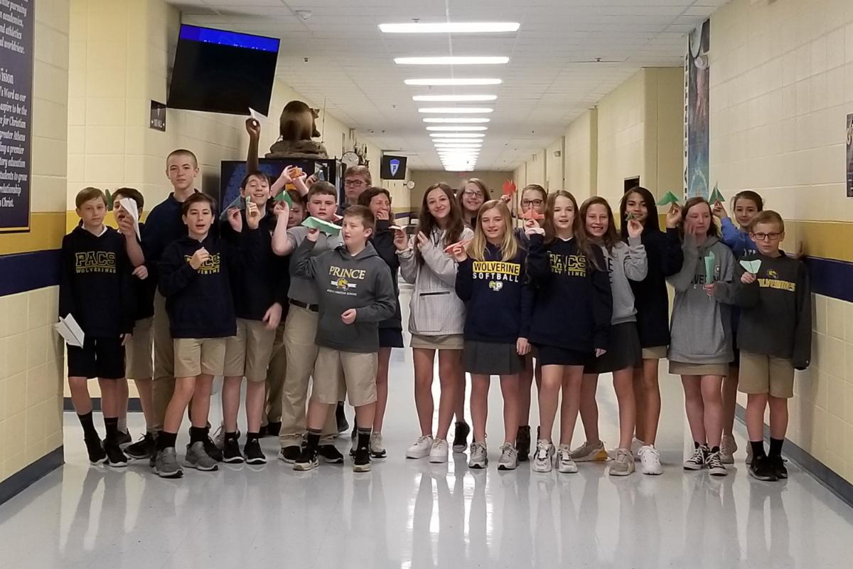Students in Mrs. Schroeder's 6th grade Accelerated Math class applied their new knowledge of statistics using a paper airplane competition. Each student flew his or her plane and used the tiles on the floor to count the feet each plane flew.