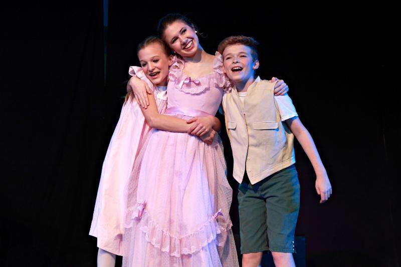 Pictured left to right: Abby Frost, High School Drama Teacher Hannah Hunt, Deven Desai,