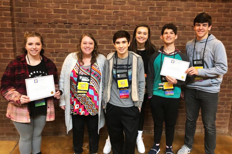 Five Prince Avenue Fine Arts students received special honors at the Georgia Thespian Conference. Senior Abby Frost, juniors Riley Wilson, Thompson Sewell, and Jack Johnston all received overall superior scores on their individual events. Thompson and Jack also performed the duet “Devil Take the Hindmost” from the musical Love Never Dies in the closing ceremony for an audience of 3,000 students and chaperones while Abby was recognized for her set design of Seussical the Musical.