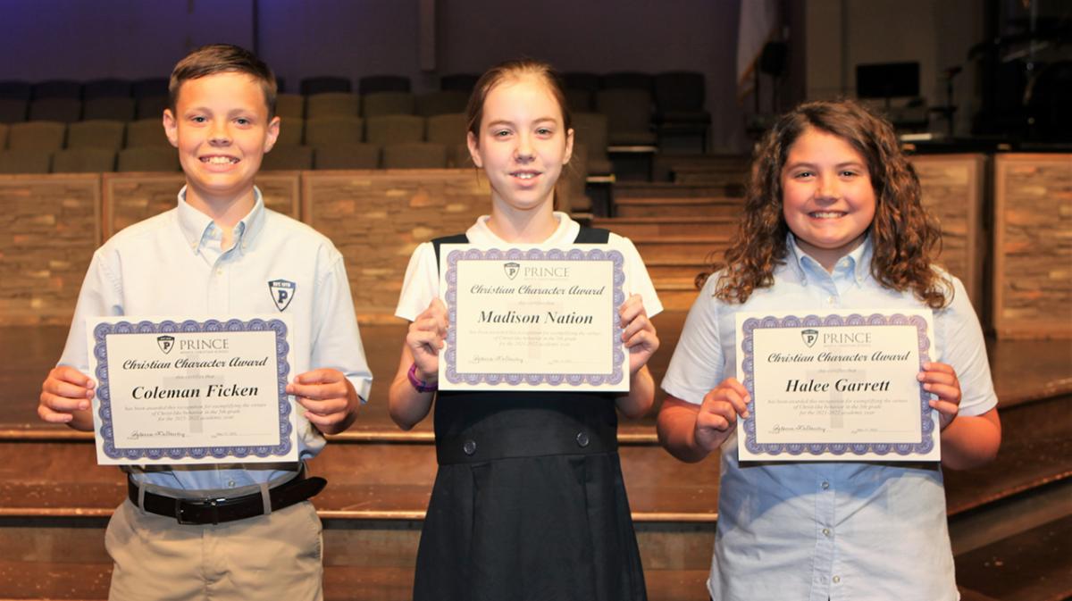 Each year, Prince teachers and administrators select students in lower and middle school who, throughout the school year, demonstrated Christ-like characteristics toward other students and teachers. The recipients of this award are representatives of the characteristics the administration hopes that all students will strive to embody.