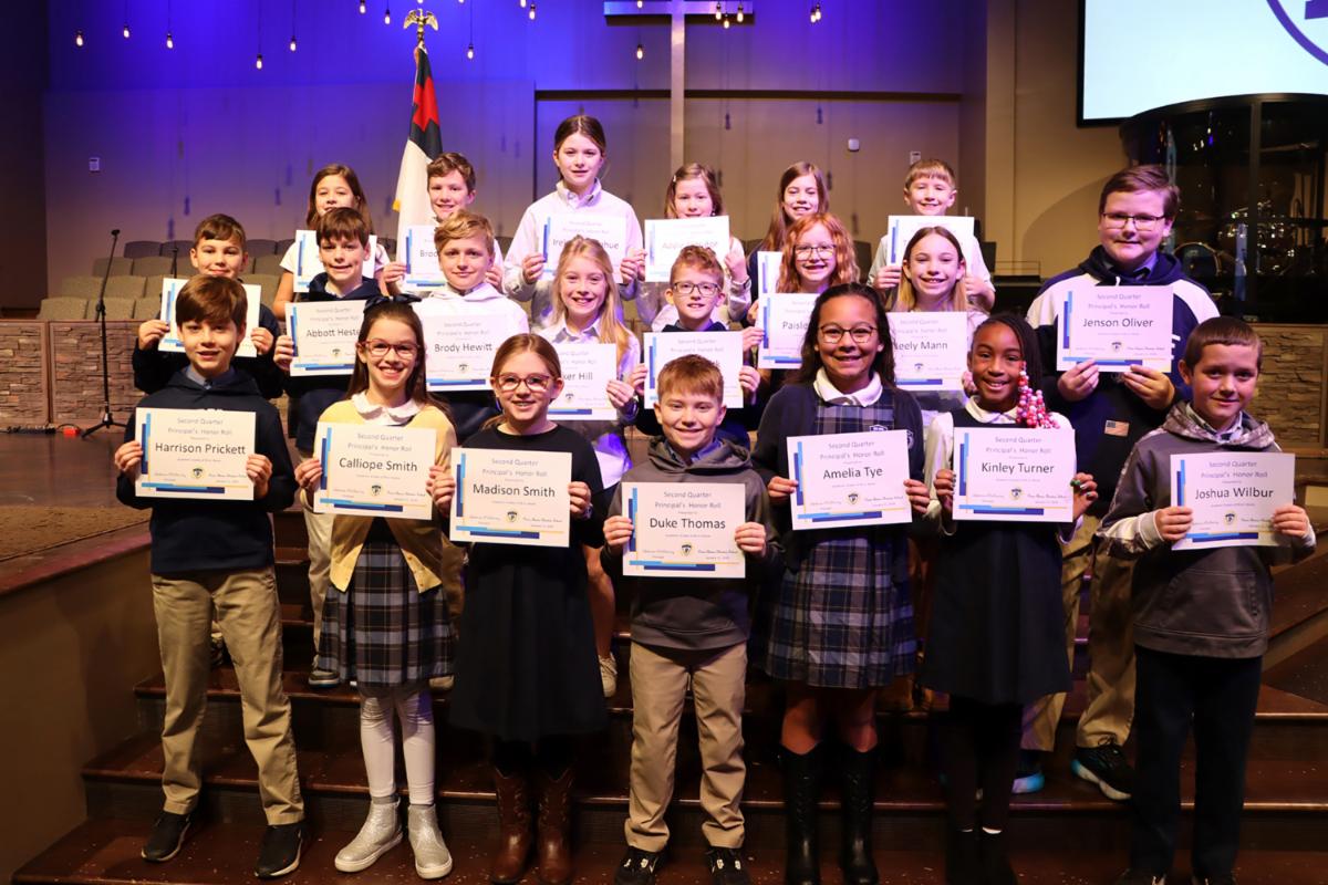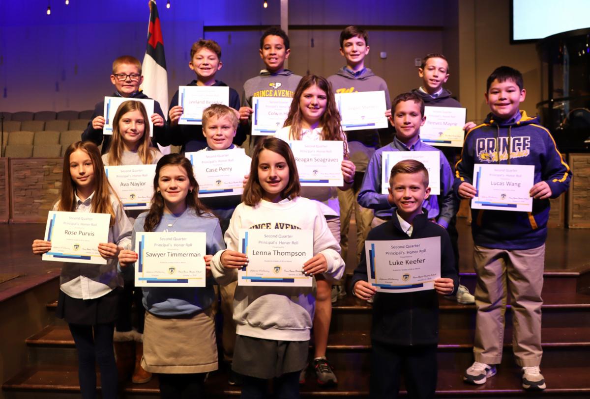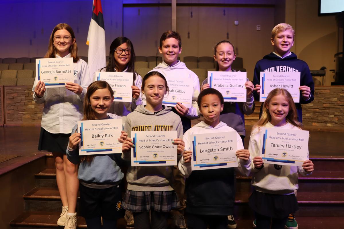 Prince fourth and fifth-grade students were recognized during Lower School Chapel for academic excellence in the second quarter of the fall semester. Students who made the Head of School Honor Roll achieved a grade of 90 or above in all core classes, and students who made the Principal’s Honor Roll achieved a combined A average in all core classes. Congratulations to these students and their parents on this great accomplishment.