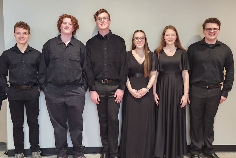 Pictured Above Left to Right: Preston Mitchell (trumpet), Koen Hewett (french horn), Andrew Gilmore (trombone), Jenifer Dunn (flute), Carly Land (Euphonium), and Ethan West (trombone) attended High School District Honor Band on February 10th at Jackson County High School.