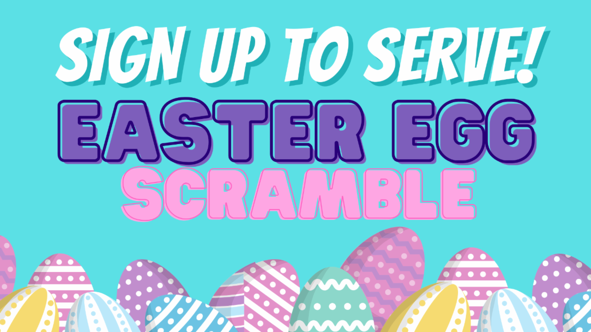 Serve at the Egg Scramble on Saturday, March 28, from 10 to 11:30 AM. Sign up to help set up, serve coffee and donuts, supervise inflatables, run games, welcome and register guests, direct cars and people, serve on the medical or safety teams, or donate pre-made door prize baskets here...