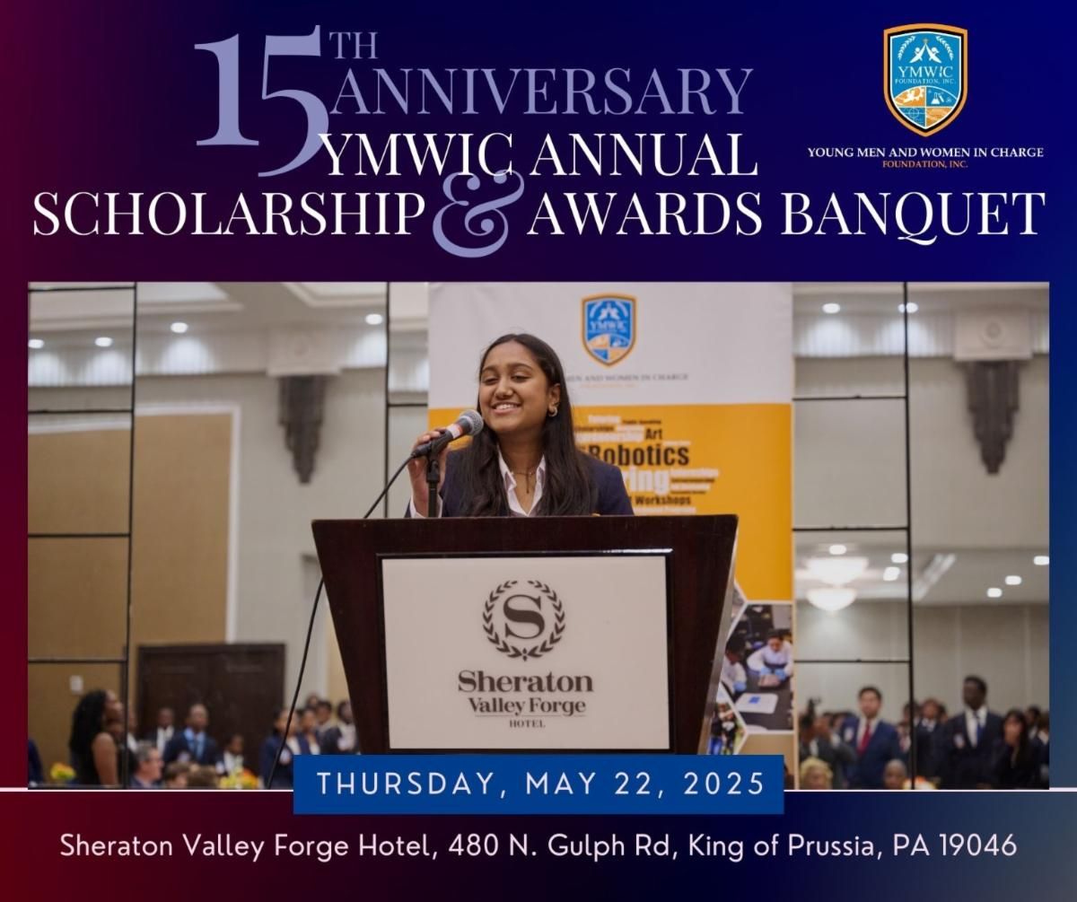 This year, YMWIC will host our 15th Annual Scholarship & Awards Banquet! This exciting event will be held at the Sheraton Valley Forge Hotel in King of Prussia, PA, on Thursday, May 22, 2025. During the Banquet, we showcase our Scholars for their achievements and reward our graduating senior Scholars with the college scholarships they have earned to attend the colleges of their choice. There will be a delicious dinner and an inspiring message from a dynamic Keynote Speaker, Pamela R. McCauley, Ph.D., CPE -- Dean and Professor, School of Engineering, Widener University.