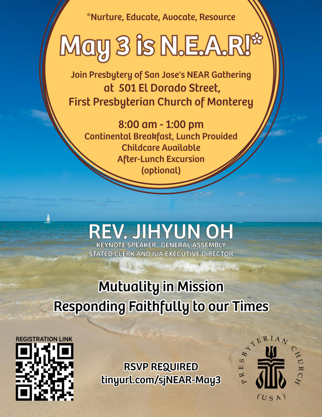 3 May N.E.A.R. Gathering, First Pres. Church of Monterey. (registration link)