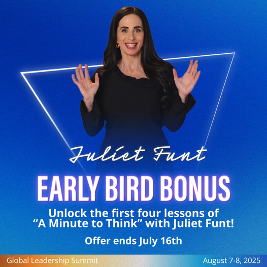 Early-bird pricing ends July 16 for the Global Leadership Summit. Order tickets for the up-and-coming leaders in your life, and receive four lessons that include a quick 3-minute video & practical exercises by Julia Funt to start leading with clarity—for individuals or teams! The discount code is PARTNER25