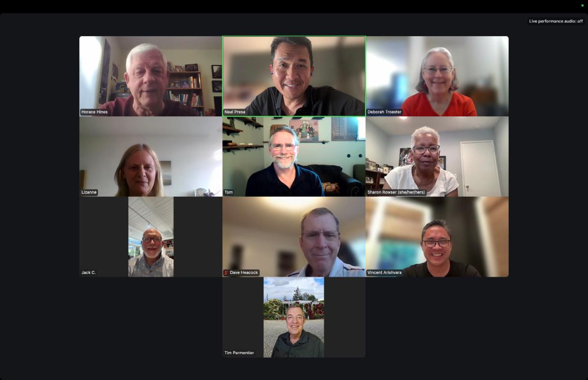 Monday June 9, COM approved Tim Parmentier (bottom square on the zoom screenshot, above) as the presbytery’s first Commissioned Ruling Elder. He will begin this week serving Trinity Presbyterian Church-San José as CRE for the next three years alongside The Rev. Dr. Vincent Arishvara, providing various pastoral duties such as preaching, officiating sacraments and weddings/funerals, pastoral care, and occasionally moderating Session in Rev. Arishvara’s absence. We congratulate CRE Tim Parmentier! A commissioning service of CRE Parmentier as part of the worship service at the NEAR Gathering II on Saturday, September 6 at First Presbyterian Church, Mountain View.